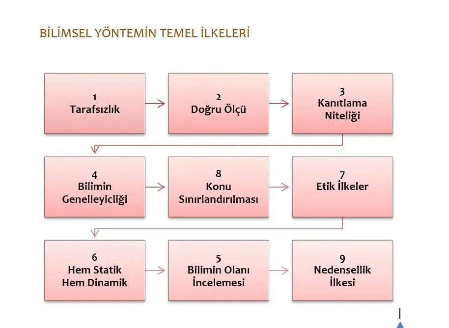 | Gözlem ve veri toplama | Dünyayı dikkatli ve tarafsız incelemek; olayları belirlemek ve verilerle belgelemek. | Gözlem: nitel ve nicel veriler; tekrarlanabilirlik; önyargı azaltma; açık yöntem ve veri paylaşımı |