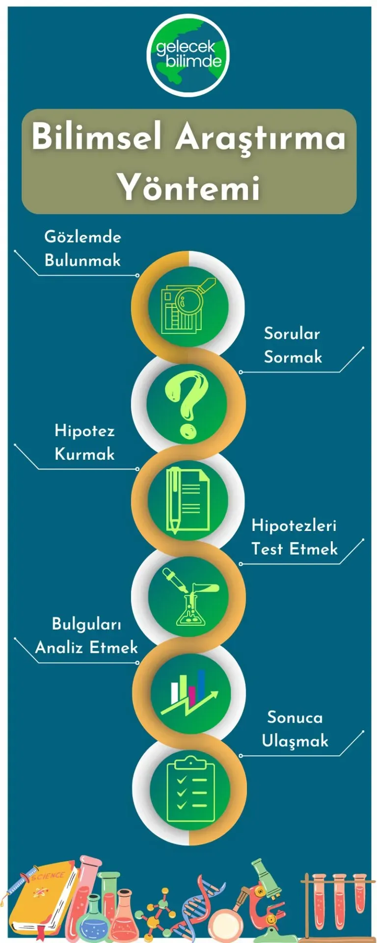 | Bilimsel Yöntem Nedir? | Çevremizdeki olayları açıklamak için sistematik ve tekrarlanabilirlik odaklı bir süreç; gözlemden sonuç çıkarılmasına kadar yol gösterir. |