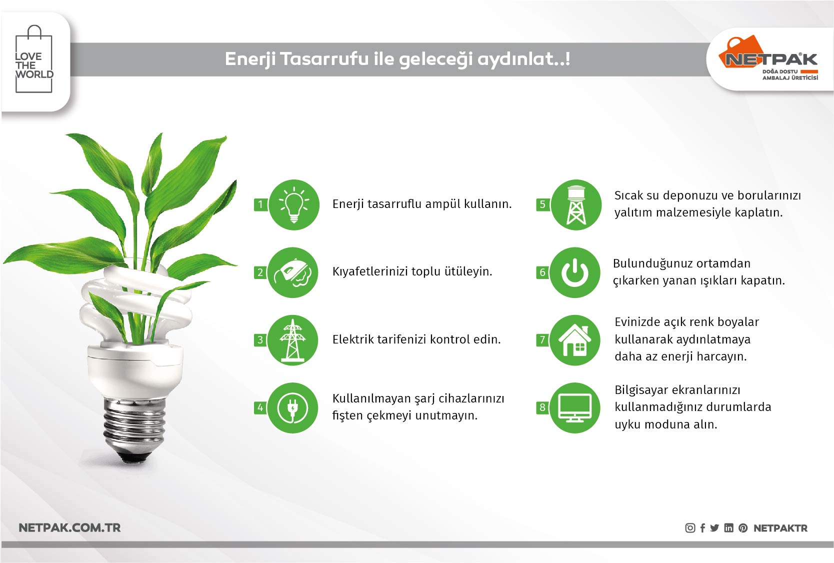 4. Aydınlatmada LED Ampuller Tercih Edin Geleneksel ampuller yerine LED ampuller kullanarak enerji tüketimini önemli ölçüde azaltabilirsiniz.